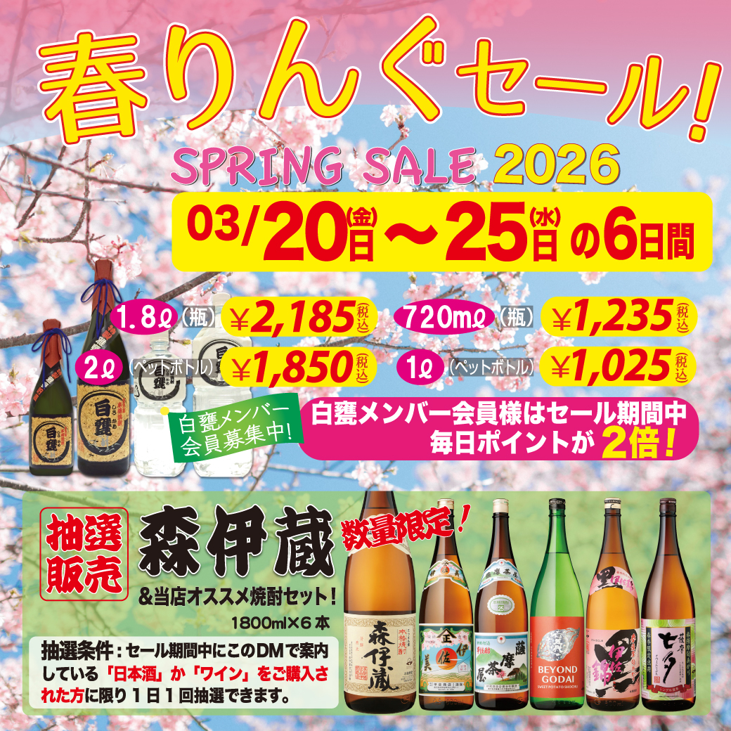 2026年03月20日(金)〜03月25日(水)までの6日間、毎年恒例の「春りんぐセール」を実施いたします。